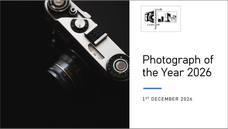 November 25th – Photograph of the Year This is separated into 4 categories and an overall winner. Categories are: Black and white print Colour print Black and White projected Colour projected Eligible photographs are drawn from previous competitions where they have scored 17/18 and above. The cut off point will depend on overall numbers. The winners from each category then go forward to the overall Photograph of the Year competition.
