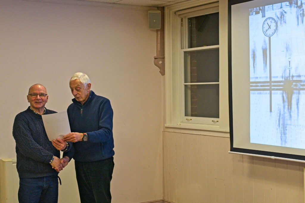 Stuart Knight receives his award for Photograph of the Year from club chair, Trevor Patchett
